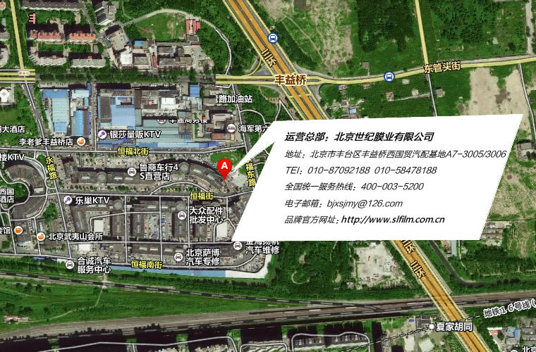 地址:北京市丰台区丰益桥西国贸汽配基地A7-3005/3006 TEI:010-87092188 010-58478188全国统一服务热线:400-003-5200电子邮箱:bjxsjmy@126.com品牌官方网址:http://www.slfilm.com.cn
